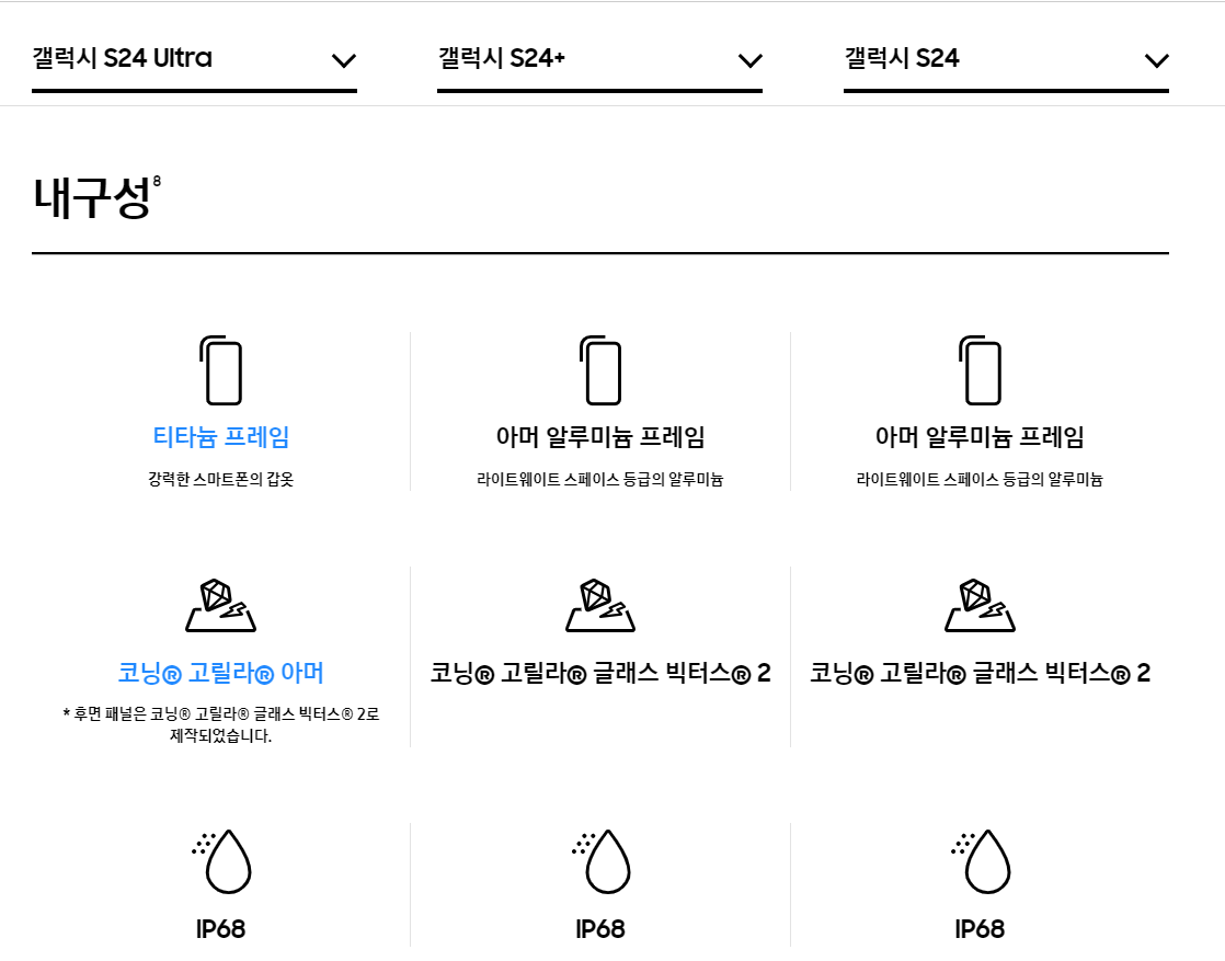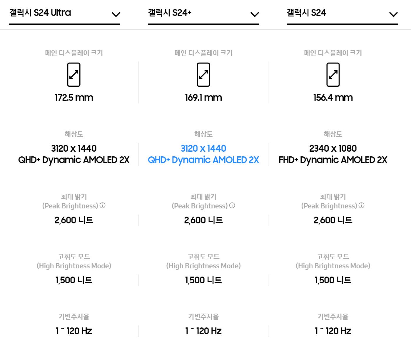 - 갤럭시 S24 울트라: 6.8인치로 세 모델 중 가장 커요. 울트라는 최고 사양을 자랑하는 모델이어서, 큰 화면이 필요하거나 여러 작업을 동시에 하는 사람에게 딱이에요.