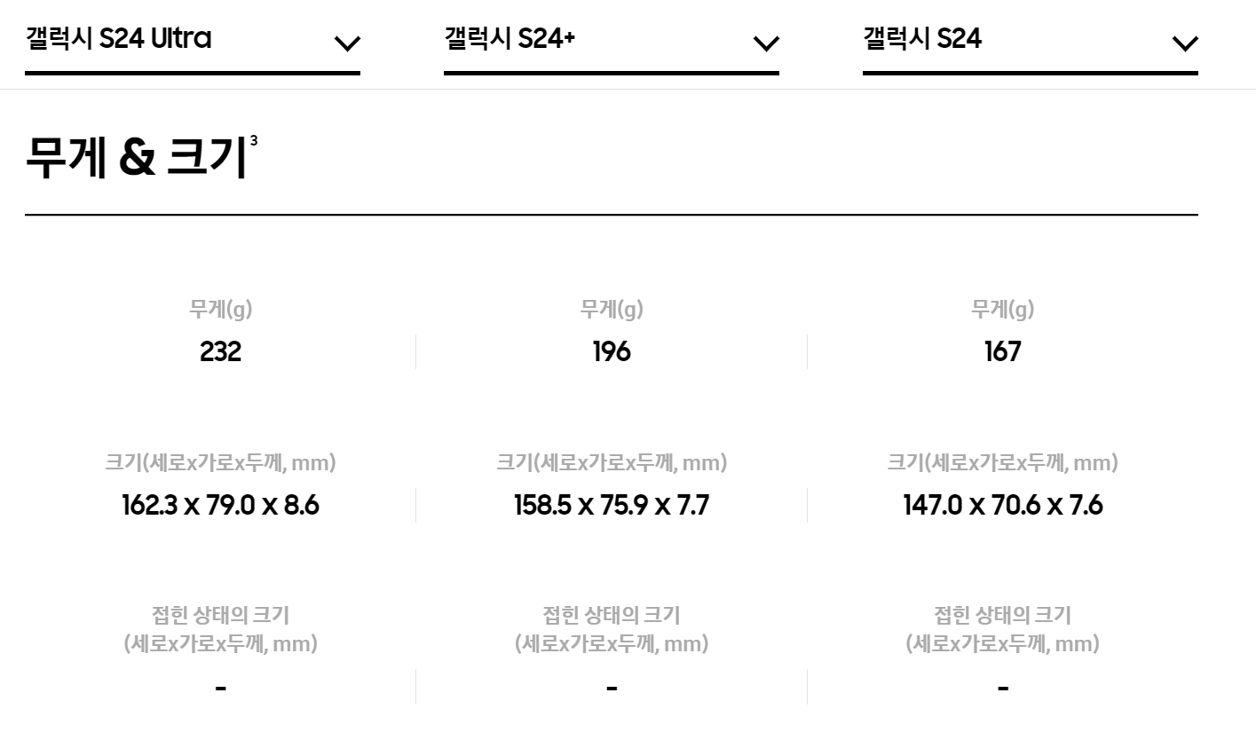 - 갤럭시 S24: 약 168g으로 세 모델 중 가장 가벼워요. 한 손으로 들고 다니기에도 부담이 없고, 오랫동안 사용해도 손목에 무리가 덜 가요.