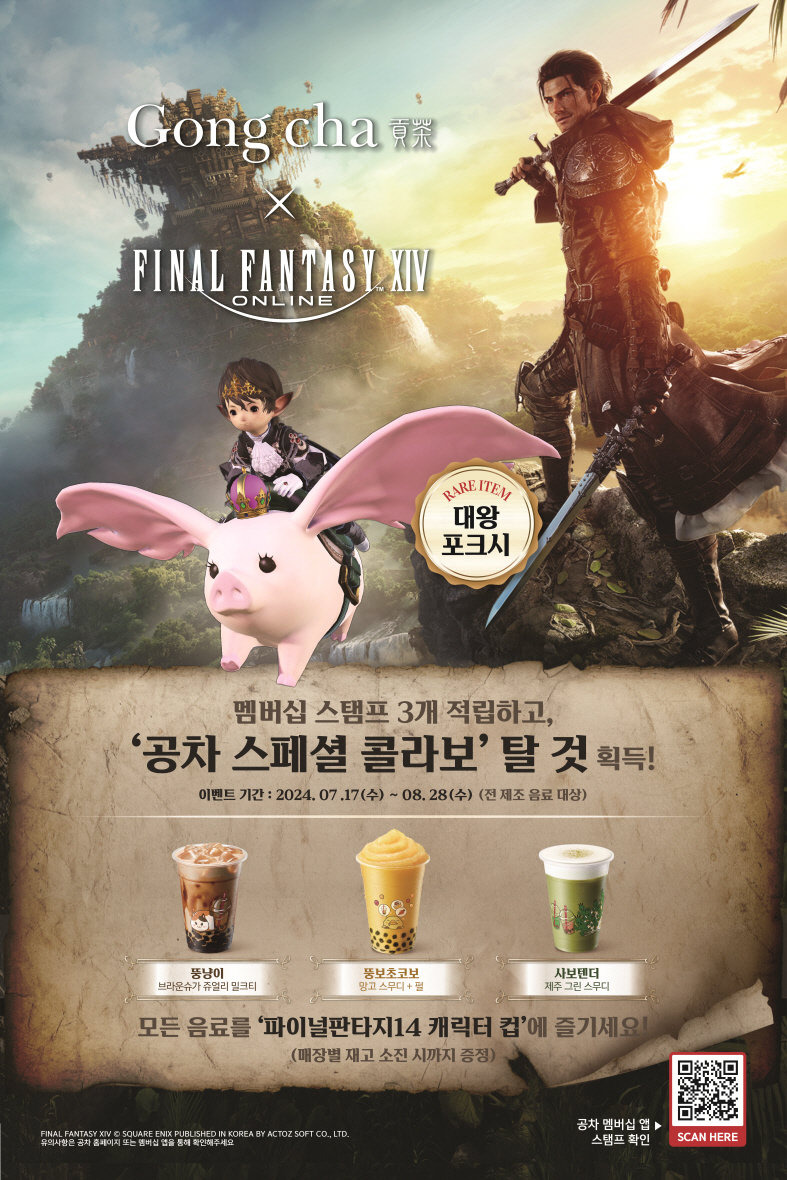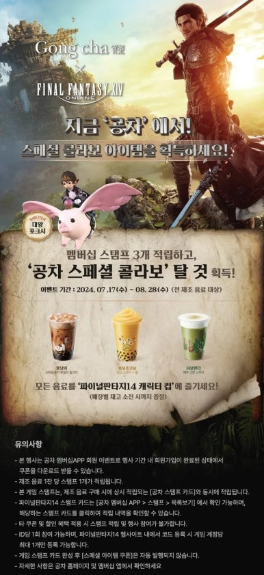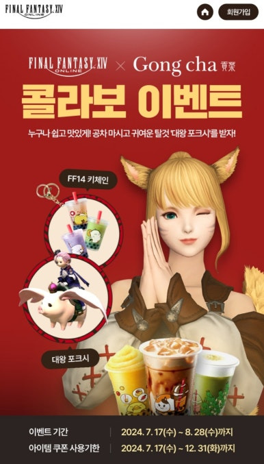 SNS에 인증샷을 올리고 해시태그 #FF14 #Gongcha #파판14 #공차 를 달면 추가 혜택을 받을 수 있는 이벤트도 진행 중입니다.