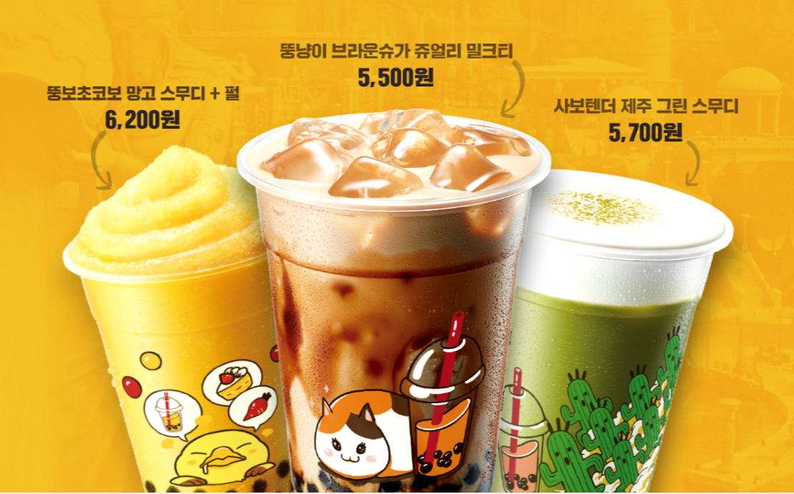 - 행사 음료: 브라운슈가 쥬얼리 밀크티, 망고 스무디+펄, 제주 그린 스무디